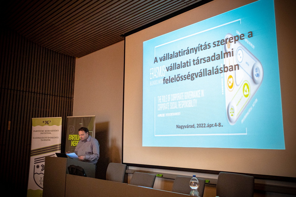 A nagyváradi Partiumi Keresztény Egyetem szervezésében „A vállalatirányítás szerepe a vállalati társadalmi felelősségvállalásban” elnevezéssel 2022.04.04-08 között valósult meg az Erasmus+ BIP program jelenléti része Nagyváradon. A házigazda Partiumi Keresztény Egyetem Gazdaság és Társadalomtudományi Kar oktatóin és hallgatóin kívül az eseménybe aktívan bekapcsolódtak az Óbudai Egyetem Keleti Károly Gazdasági Karának és a Selye János Egyetem Gazdaságtudományi és Informatikai Karának (GIK) oktatói és hallgatói egyaránt. A GIK-et Csinger Bence és Mocsári Ádám Tibor képviselték.