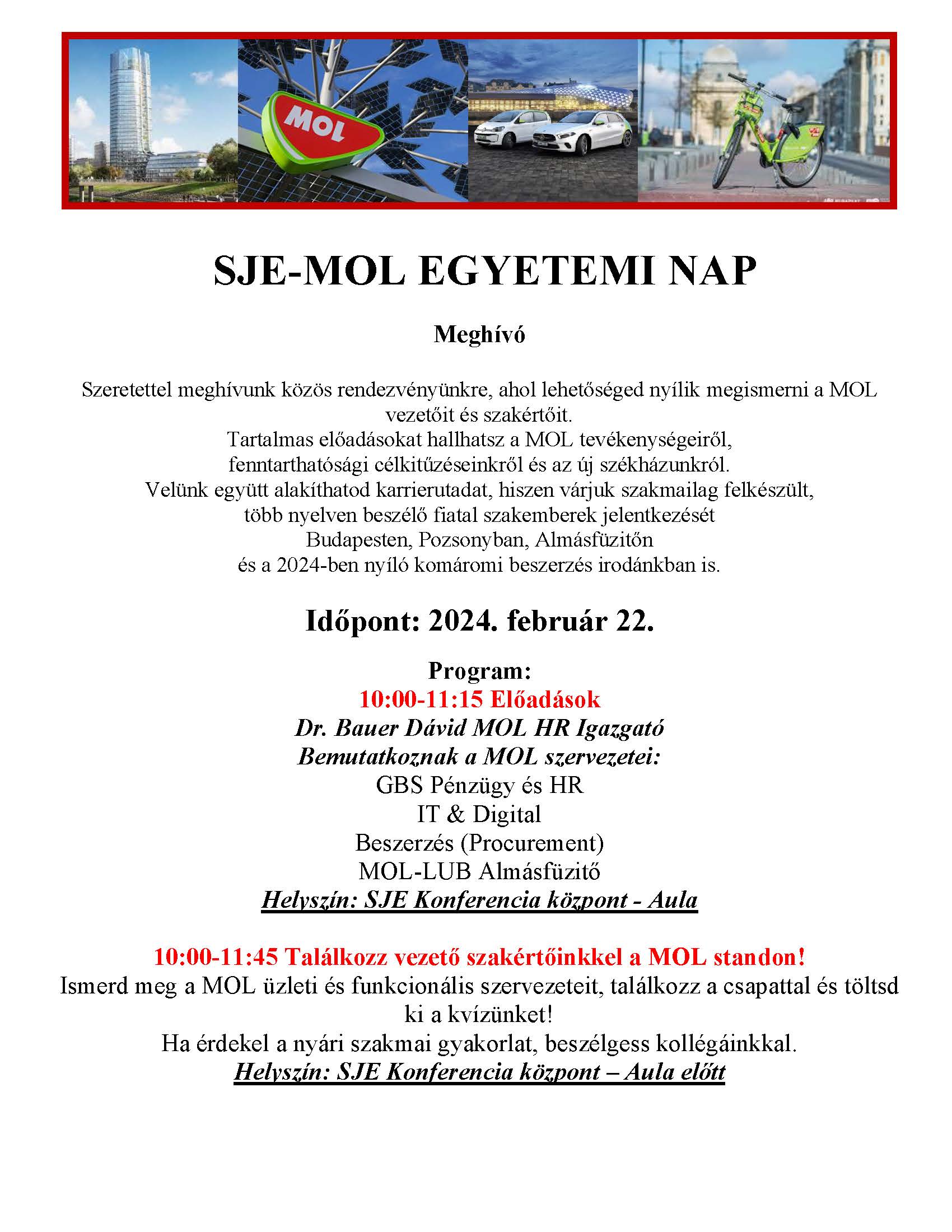 MEGHÍVÓ SJE-MOL EGYETEMI NAPRA – 2024.02.22.