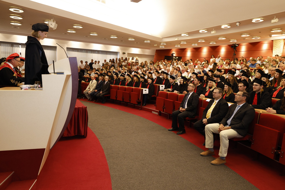 A Gazdaságtudományi és Informatikai Kar diplomaátadó ünnepségei július 7 és 8- án zajlottak le, melyek helyszínéül intézményünk Konferencia-központjának díszterme szolgált. A 2024/2025-ös akadémiai évben összesen 193 végzős kapta meg a tanulmányaik sikeres befejezését igazoló oklevelet.
