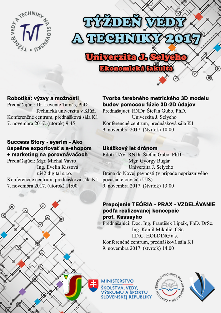 EF UJS sa aj tento rok aktívne zapája organizovaním zaujímavých prednášok, seminárov a workshopov pre odbornú a širokú verejnosť do Týždňa vedy a techniky na Slovensku, ktorý je organizovaný Ministerstvom školstva, vedy, výskumu a športu Slovenskej republiky, v spolupráci s Centrom vedecko-technických informácií SR Národným centrom pre popularizáciu vedy a techniky v spoločnosti. Cieľom každoročne organizovaného Týždňa vedy a techniky na Slovensku je zlepšiť vnímanie vedy a techniky v povedomí celej spoločnosti, popularizovať a prezentovať ich, vzbudiť záujem mladých ľudí o štúdium vedeckých a technických disciplín, informovať verejnosť o poznatkoch vedy a techniky a o nutnosti podporovať vedu a techniku, ktoré sú základom hospodárskeho a spoločenského pokroku a pomáhajú riešiť globálne problémy a výzvy.