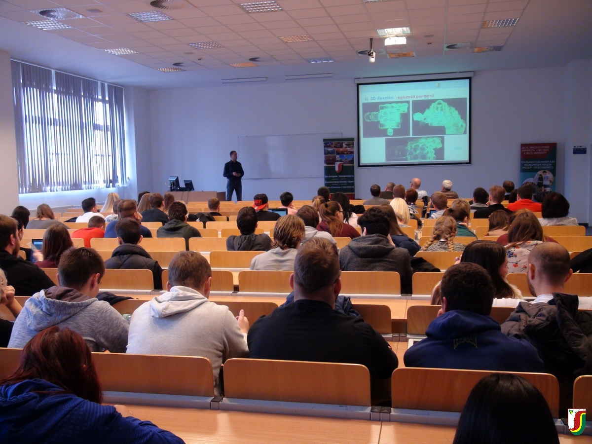 9. 11. 2017 RNDr. Štefan Gubo, PhD. - vedúci Inteligentného robotického centra EF UJS - vo svojej prednáške predstavil jednotlivé kroky procesu, v ktorom môže 2D-3D dátová fúzia vytvoriť farebný a metrický 3D model veľkého objektu. V rámci fúzie digitálne snímky vyhotovené s profesionálnou kamerou DSLRboli vložené do 3D mračna bodov zaznamenaného laserovým skenerom. Boli predstavené výsledky dvoch dokončených výskumných úloh: modely kostolov reformovanej cirkvi v Kližskej Nemej a v Šamoríne.