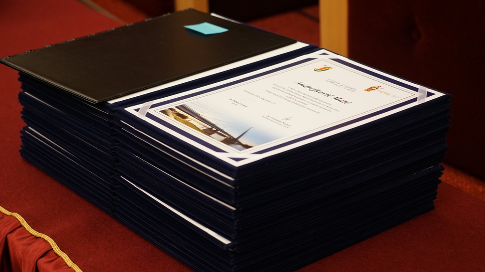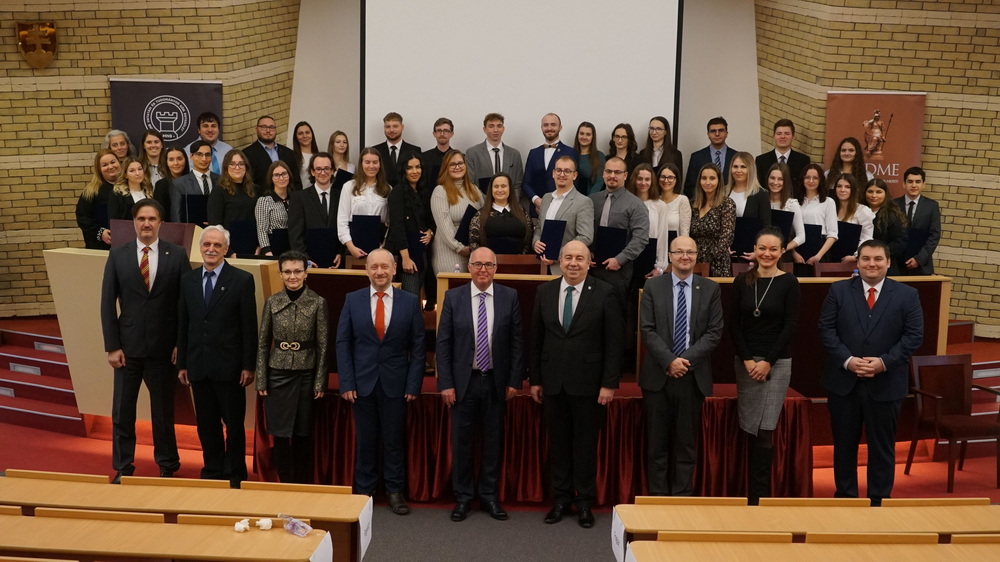 Diplomy odovzdali 40 študentom Dr. Zoltán Dubéczi, hlavný poradca prezidenta NBM, rektor našej univerzity a dekan fakulty. Po slávnostnom odovzdaní diplomov odznela prednáška riaditeľa NBM v oblasti riadenia rizík, devízových rezerv a nástrojov centrálnej banky Dr. Pála Kolozsiho a riaditeľa NBM.